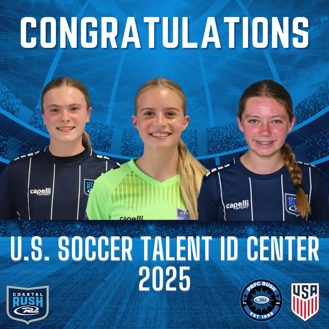 "We are proud of Emma, Lily Grace, and Indie on all of their success and their opportunity to showcase their talent to US Soccer Youth National Team scouts. We have enjoyed watching them grow in PBFC Rush and Baldwin Rush programming. We thank Coastal Rush for the opportunities they are able to help provide players with their national recognition through their success. It’s great to be a part of the Coastal Rush family and looking forward to how they continue to push more players in the future. Good luck on Wednesday ladies!"